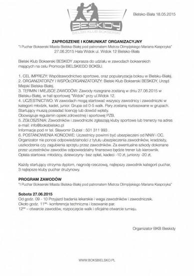 Po raz pierwszy w Bielsku-Białej bokserzy skrzyżowali rękawice, walcząc o Puchar Bokserski miasta. Po ponad 20 latach przerwy w boksie amatorskim, w zawodach zorganizowanych na terenie Hali Widok odbyło się trzynaście walk zawodników z kilku polskich klubów. Po oficjalnym otwarciu, w którym udział wzięli Mistrz Olimpijski Marian Kasprzyk, Sławomir Dubiel prezes BKB Beskidy oraz Przemysław Drabek Wiceprzewodniczący Rady Miejskiej w Bielsku-Białej odbyły się pierwsze walki.